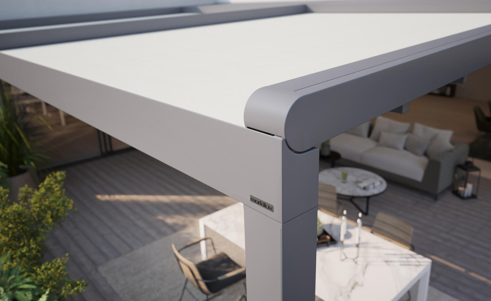 Pergola Markilux stretch se skládací látkovou střechou je vhodnou variantou pro krytí velkých ploch terasy před sluncem a deštěm. Střecha z látkového baldachýnu při zavřeném stavu přiléhá k vodícím lištám a zajišťuje tak nepromokavý spoj. Vodící lišty podepírají dvě nohy pergoly, které jsou kotveny do betonové patky či podlahy. V nabídce je široký výběr komfortních doplňků.